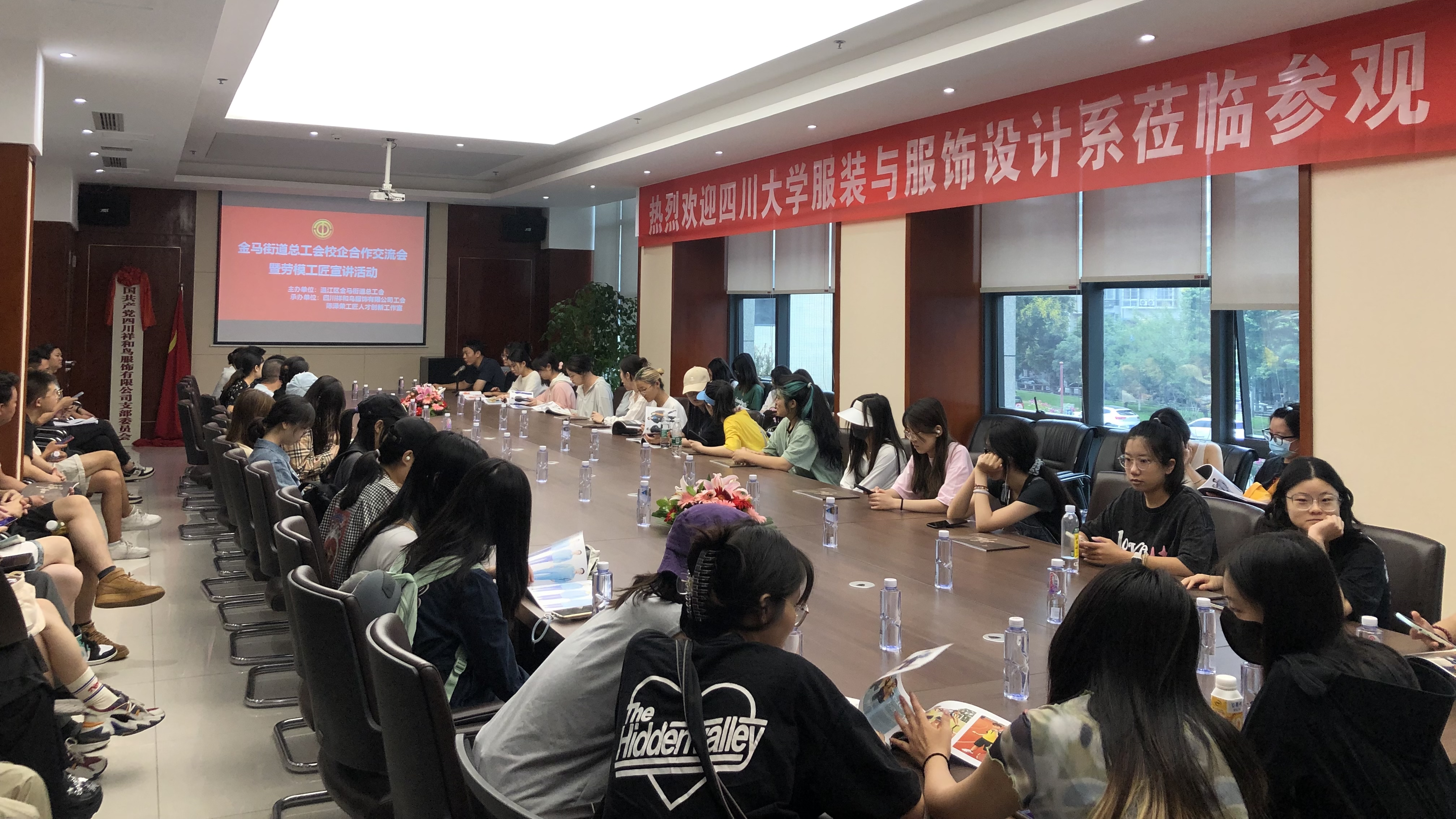 在座谈交流会上,四川祥和鸟服饰有限公司行政副总裁郭志清女士发表了热情洋溢的致辞。“成都工匠”称号获得者、集团生产厂厂长陈泽荣先生对企业生产经营等情况作了详细的介绍,他还从劳模工匠宣讲团成员的角度,讲解了以其为牵头者的“工匠创新工作室”组建与发展情况,并鼓励同学们努力实践,做一行、爱一行、钻研一行。企业设计师龙飘飘女士结合自身成长经历,为同学们细致描述了设计类岗位所需的实务技能。课程组老师们还对同学们的安全参观、有序参观、细致参观提出了进一步要求。