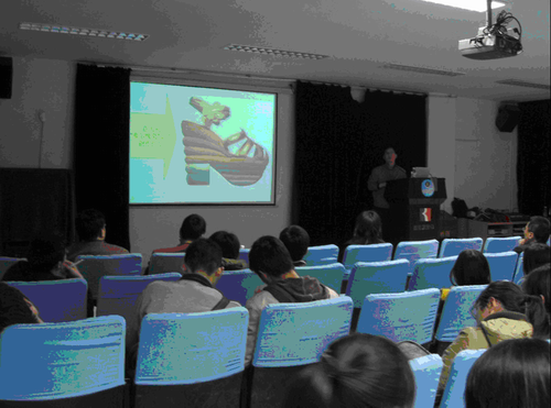 讲座一开始徐老师首先为大家展示了各种各样的鞋子,充分吸引了大家的注意力,而后徐老师为大家讲解了鞋子的历史,从先秦到现在,徐老师的每一个实例都代表了当时的潮流。讲座中还穿插了互动环节,大家就鞋子的历史以及在日常生活中应该注意的方方面面,向徐老师提出了疑问,徐老师也向大家提问了一些小常识,并为回答正确的同学颁发了小奖品,使整个讲座的气氛都活跃了起来。